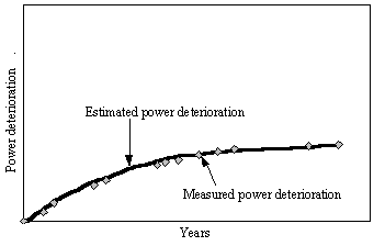Figure 15 shows the power deterioration estimates in comparison with the measured power deterioration of the