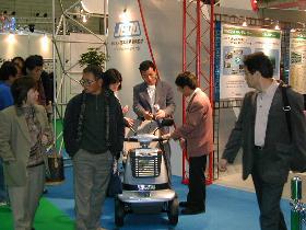 でんき自動車ブース(主催:財団法人 日本電動車両協会)では「走っています!あなたのそばで−でんき自動車」のテーマで、ダイハツハイゼットハイブリッド、スズキエブリイEV、スズキ セニアカーET4A及びニッサンアルトラEVが出展されており、絶えず人垣が出来る程、盛況で関心の高さが伺いしれた。