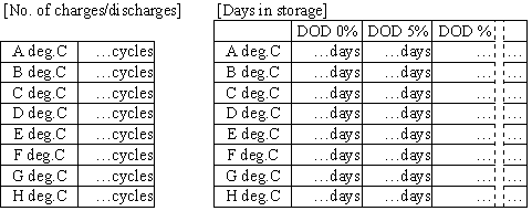 表3に表2の実用走行パターンモデルを電池の負荷条件に置き換えた例を示す。充放電回数、電池無負荷保存日数など電池負荷に関わる条件を電池温度毎に分類する。そして、条件毎のデータを積算して市場における電池劣化を劣化推定に引用する。